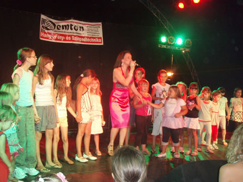 a közönséget majd végezetül a gyerekekkel elénekelte a Szívverés